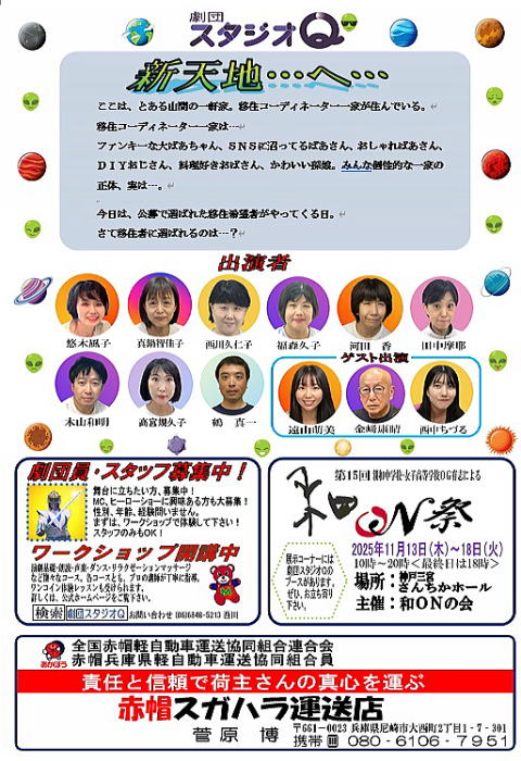 劇団スタジオQ公演 ![]() 10月19日(土)午後2時30分/午後6時30分メイシアター小ホール |